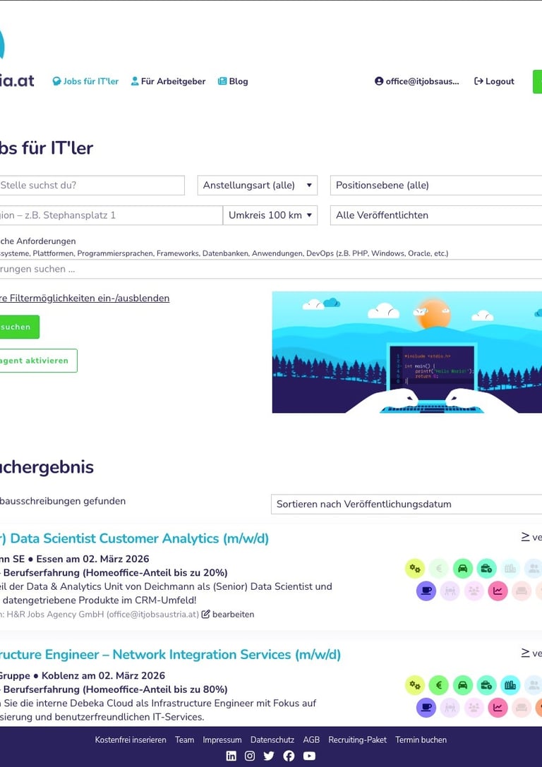 Entwicklung und Management von itjobsaustria.at, itjobsgermany.de und itjobsswiss.ch. Diese spezialisierten Plattformen verbinden Arbeitgeber und IT-Fachkräfte in drei Ländern effizient und zielgerichtet.
